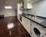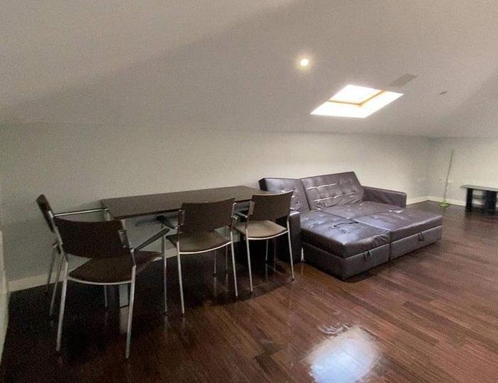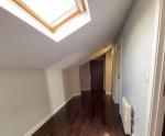 Top-floor flat with slanted ceilings giving it a unique, cozy character.