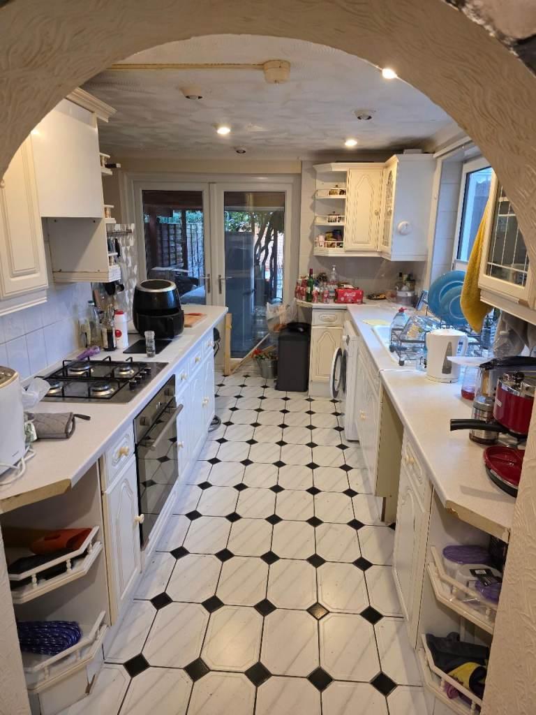 The first floor comprises three generously sized bedrooms, along with a family bathroom and a separate WC. On the ground floor, the property boasts a spacious living and dining area, an extended and well-equipped kitchen, and an additional bathroom with WC, making it ideal for comfortable family living.