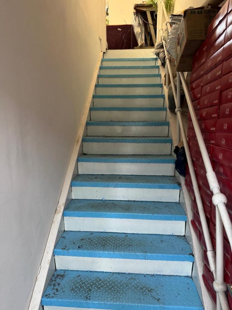 The premises include both ground and first floors, each equipped with toilets and small kitchen areas. There is a separate office area located at the entrance of the building. The property is highly secure, featuring CCTV, an electric roller shutter, and a locked gated area. Air conditioning is installed throughout.